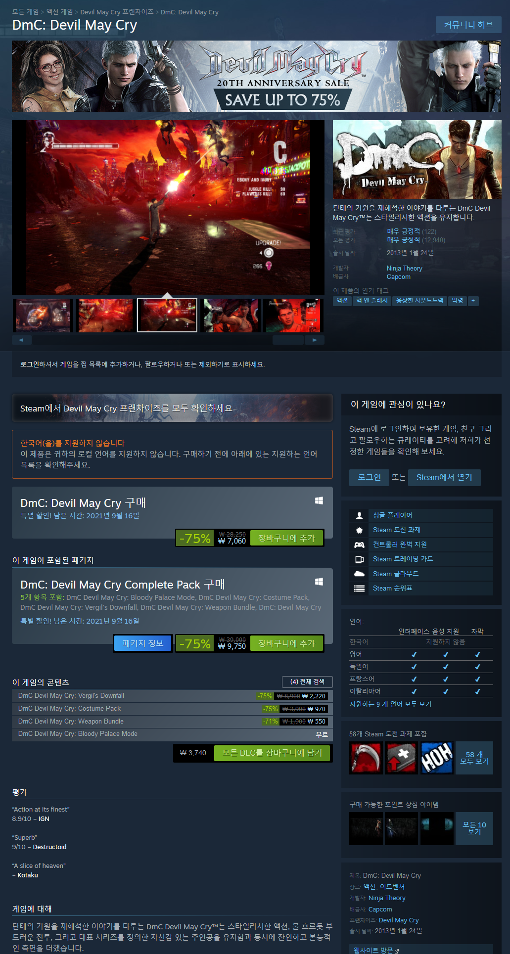 - 독보적인 제작 기술 - Ninja Theory는 최신 성능 캡처 기술을 활용해 DmC의 강력한 전투 수준에 완벽히 걸맞은 캐릭터 디자인, 스토리텔링, 시네마틱을 제공합니다.