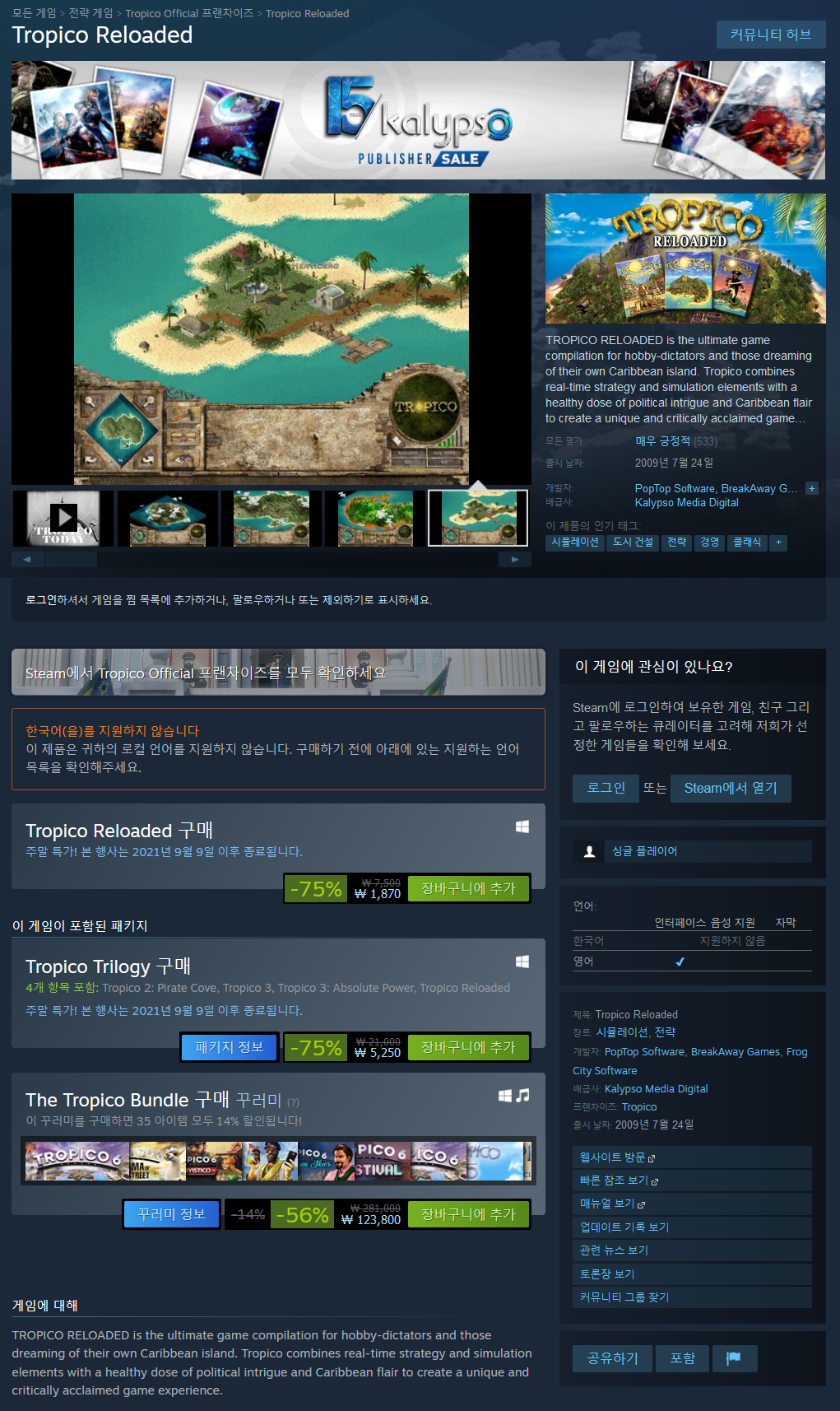 | 트로피코 4, Tropico 4 소개(Introduce),리뷰(Review),할인(Sale) 관련 (0) | 2021.09.05 |