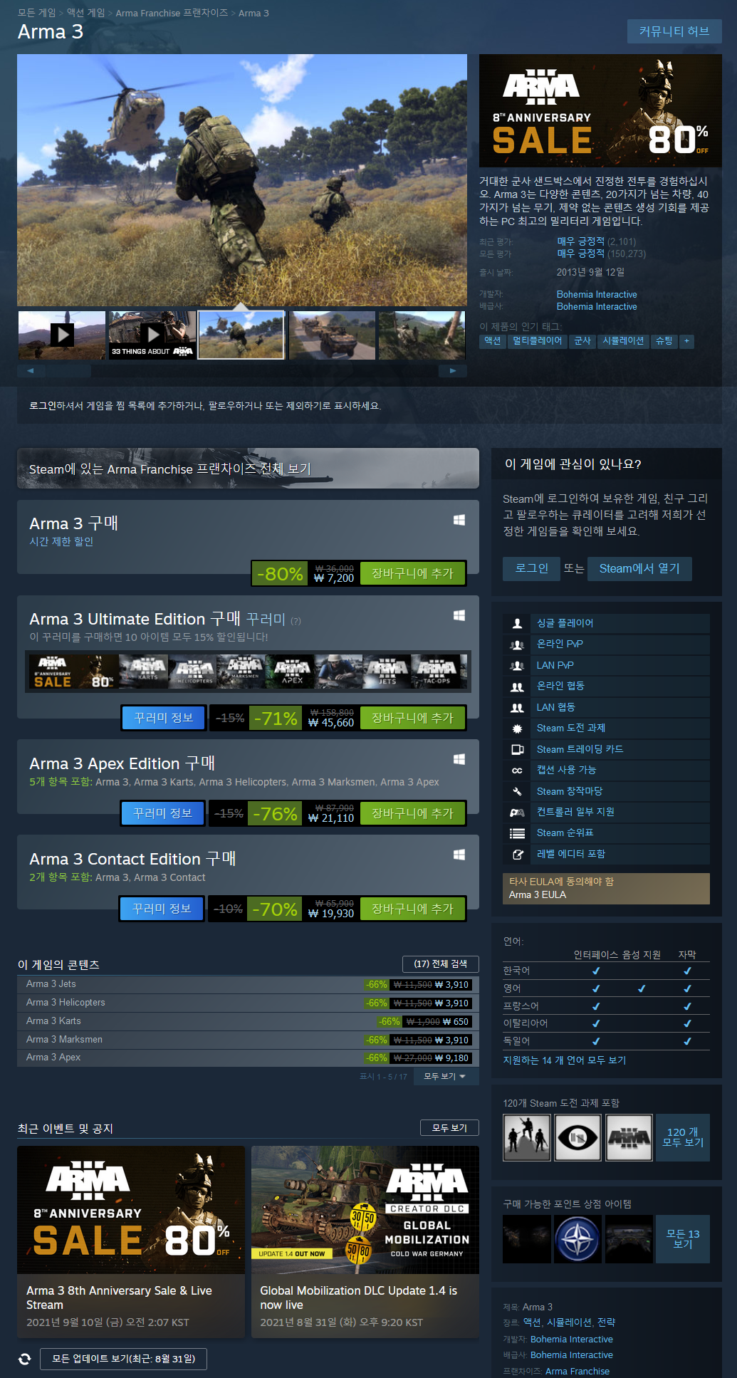 지중해의 일촉즉발의 상황 속으로 내던져진 병사, 벤 케리의 이야기를 따라 생존, 적응, 승리의 요소로 진행되는 캠페인 에피소드를 플레이하세요. 주요 쇼케이스 시나리오를 완료하면서 Arma 3의 다양한 게임 플레이 속에 빠져 보세요. 치열한 경쟁이 벌어지는 사격훈련을 통해 자신의 사격 및 이동 능력을 키우고, 싱글플레이어와 멀티플레이어 튜토리얼과 가상 현실 전용 훈련 환경을 선보이는 Arma 3 신병 훈련소에 입소해서 훈련을 끝까지 수료하세요. - 멀티플레이어