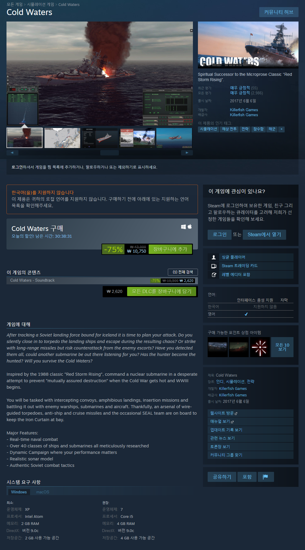 마이너한 장르라 사헌 이후로 괜찮은 잠수함 게임이 안나오는 추세였는데, 오랜만에 괜찮은 게임이 나왔습니다.