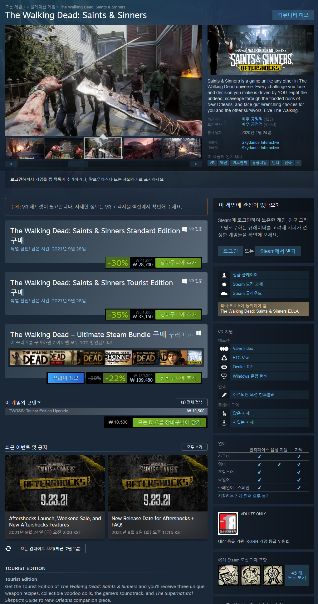 Saints & Sinners는 워킹 데드 세계관에서 볼 수 없는 게임입니다. 당신이 직면하는 모든 도전과 결정은 당신이 주도합니다. 언데드와 싸우고, 침수된 뉴올리언스의 폐허를 청소하고, 당신과 다른 생존자들을 위한 끔찍한 선택에 직면하십시오. 워킹 데드의 어두운 드라마를 당신의 피부로 만나보세요.
