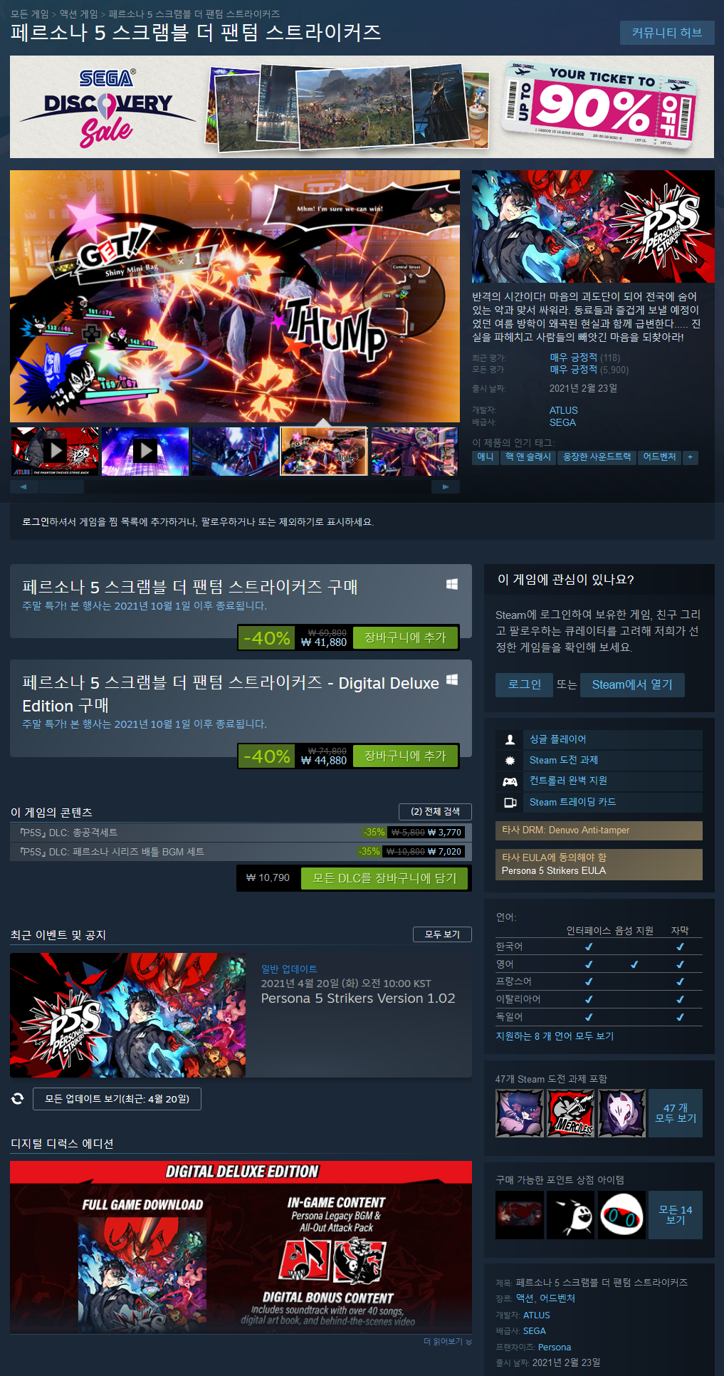 - 『P5S』의 세계를 PC의 선명한 풀 HD 화질로 체험, 4K 화질도 지원