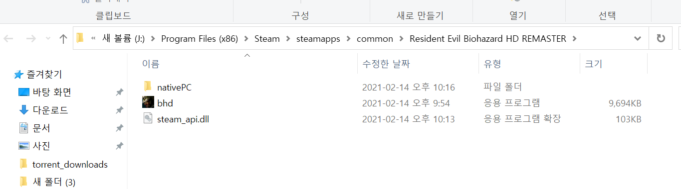 바이오하자드 설치해신후 라이브러리에 "biohazard HD REMASTER"부분에 마우스 오른쪽 버튼을