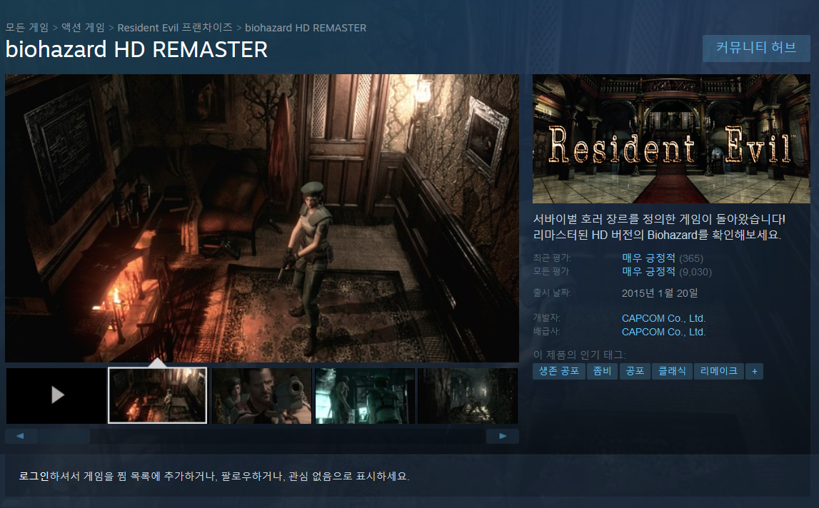 바이오 하자드 HD 리마스터드는 시스템 로캘 문제로