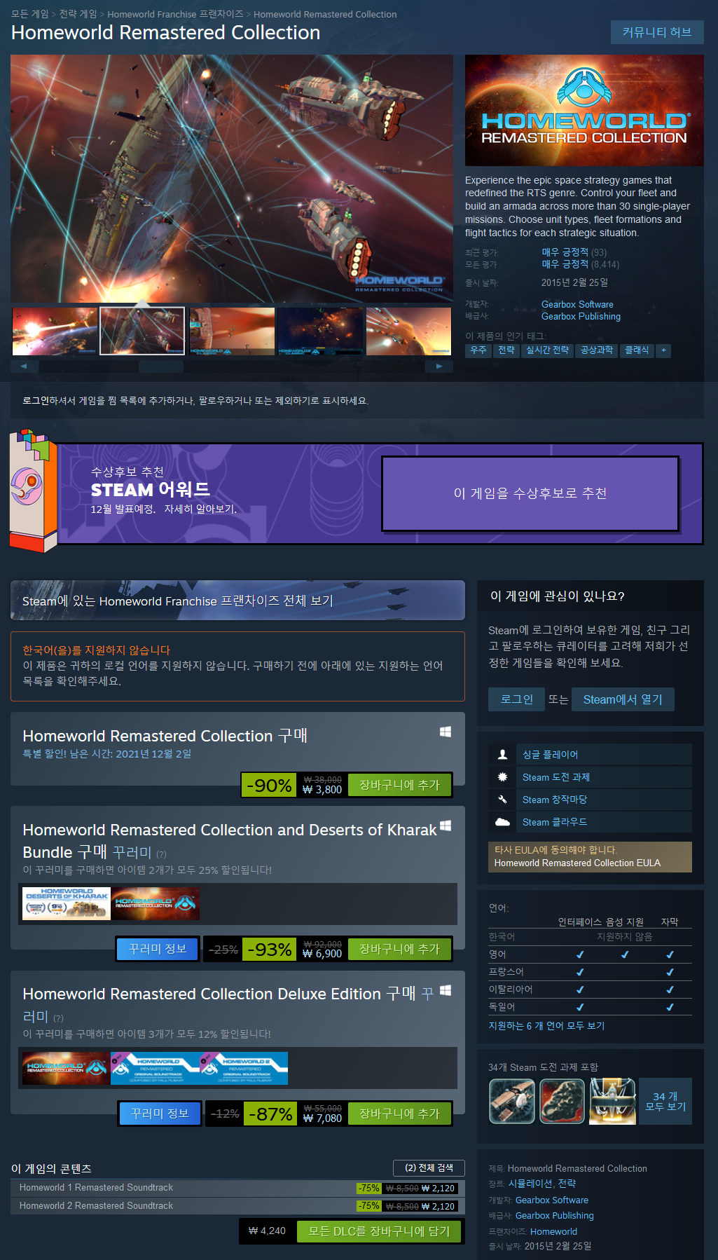 하지만 콜렉션은 홈월드 1,2편을 포함하고 있지만 1편의 확장팩인 카타클리즘의 저작권의 얽혀있어 콜렉션에 포함되어 있지 않습니다. 그리고 2편에 인터페이스를 싫어하시는분들도 아마 계실꺼라고 생각됩니다.