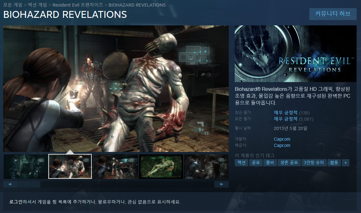 설치는 스팀경로에 RESIDENT EVIL REVELATIONS 디렉토리가 존재하는 위치를 지정하셔야