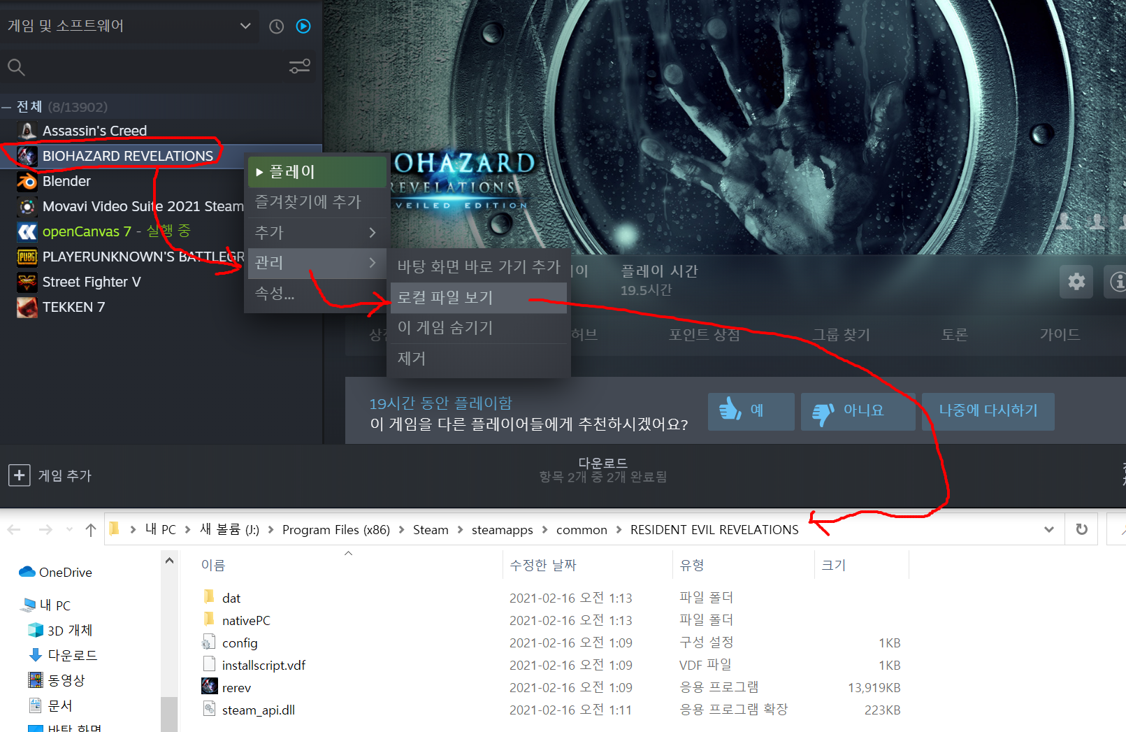 바이오하자드 설치해신후 라이브러리에 "BIOHAZARD REVELATIONS"부분에 마우스 오른쪽 버튼을