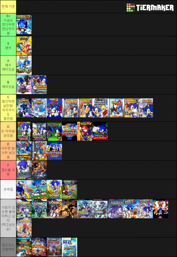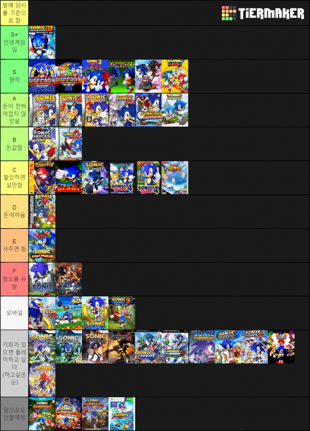 (장문)나도 개인 취향에 따라 소닉시리즈 티어표 짜봄