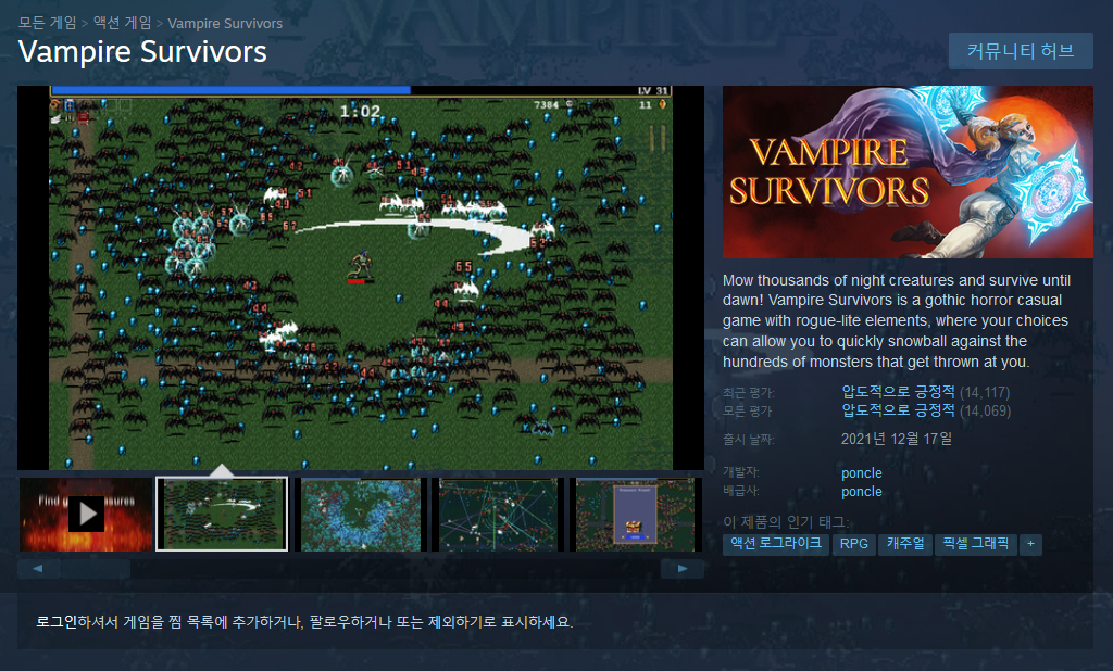 게임제목: 뱀파이어 서바이버즈, Vampire Survivors
