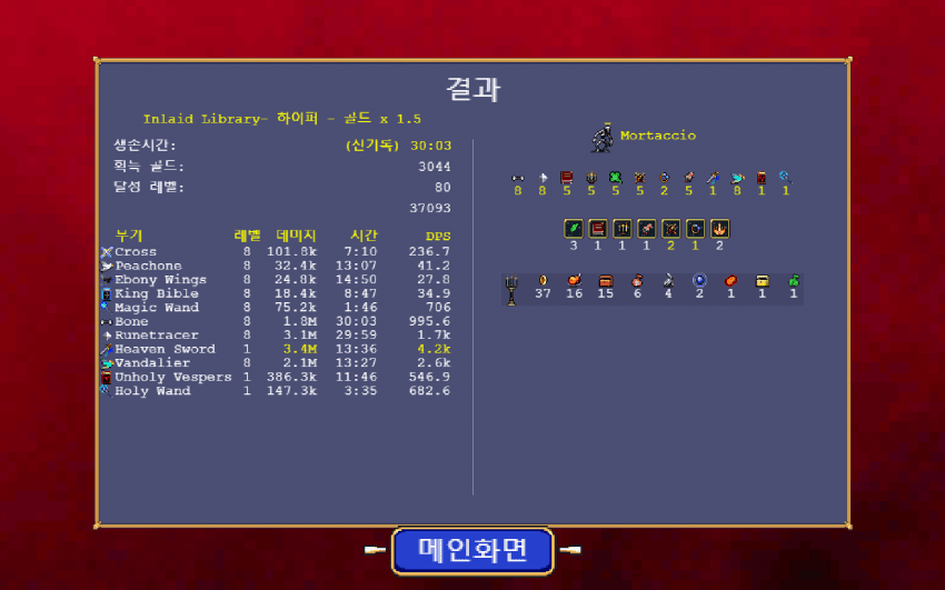가령 바이블은 나중에 보면 dps는 굉장히 낮지만, 실제 날 버티게 해주는건 이거고,