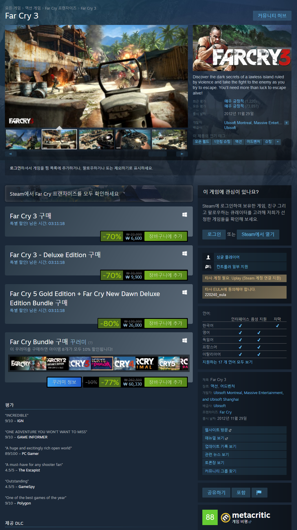 이후에 나온 파크라이 시리즈들이 그럭저럭 재미있게 할만 함에도 평가절하 당하는 이유는 이 3편의 영향이 크다.