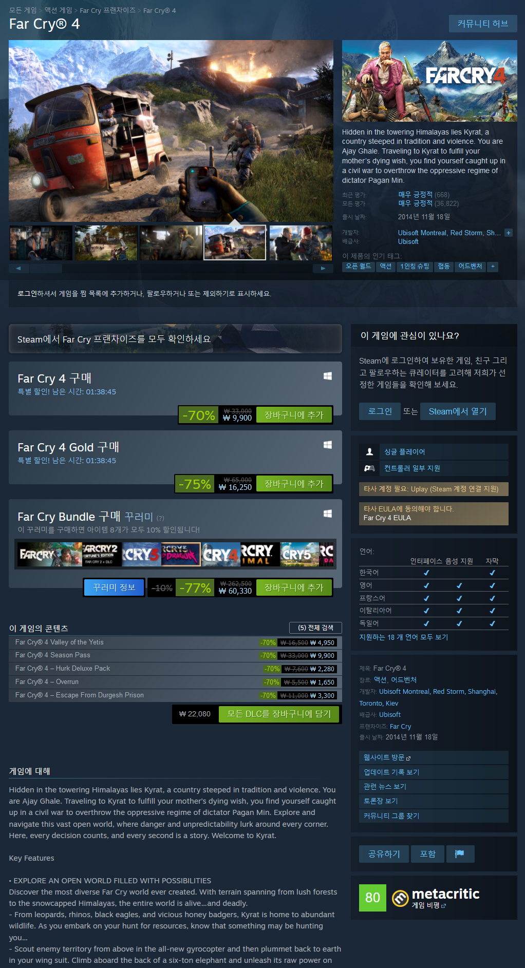 - Far Cry 4 Gold 70% (16,250원 최저가)