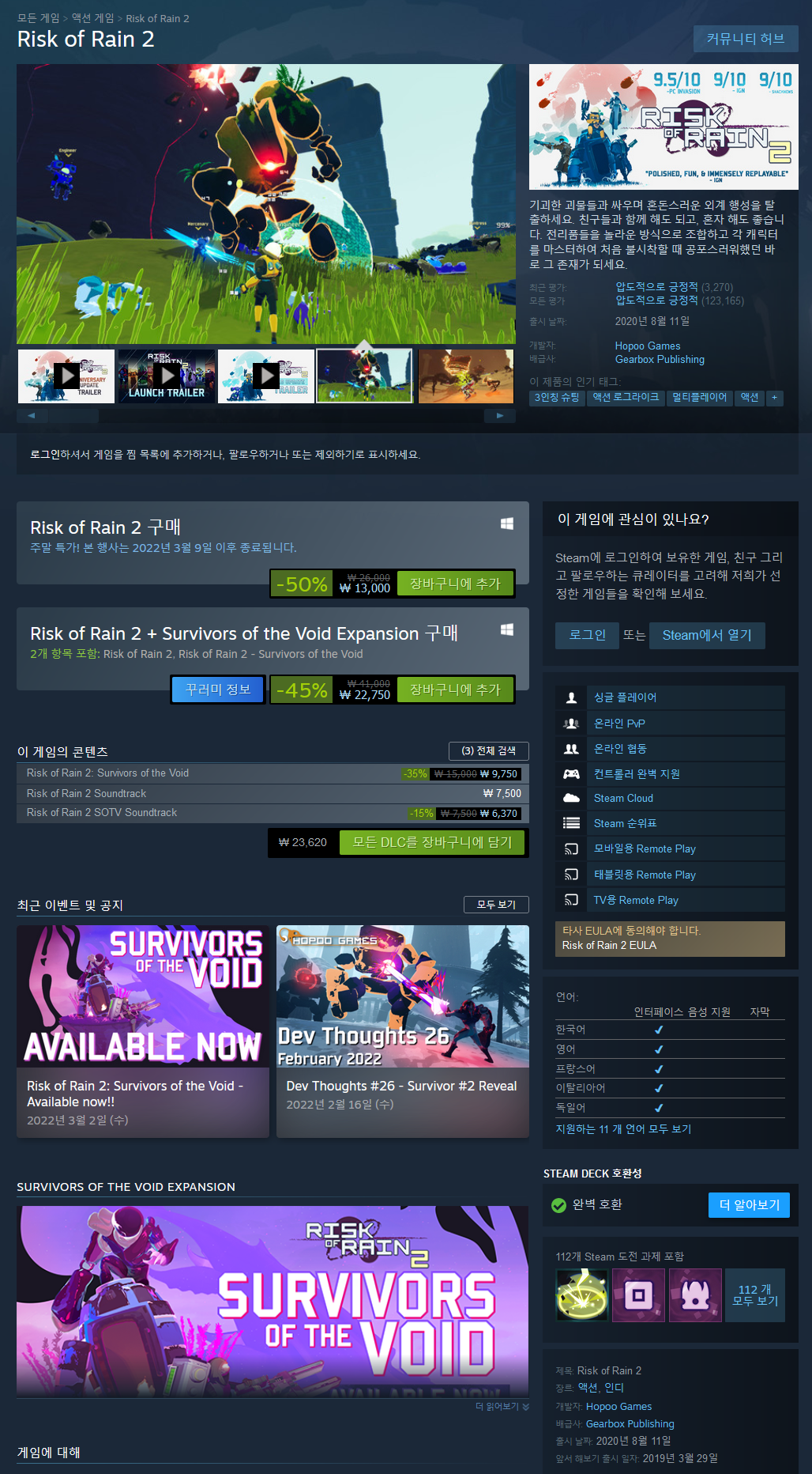 단순이 리스크 오브 레인 2가 재밌다는 평을 떠나서