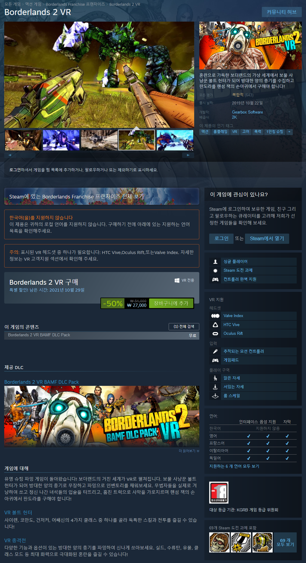 - https://store.steampowered.com/app/991260/ //보더랜드2 VR