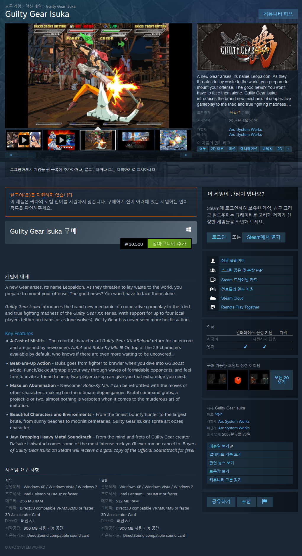 다 좋은데 게임이 재미있나요? 당신의 돈 가치가 있습니까? 잠재적으로. 친구와 함께 할 수 있는 게임을 찾고 있거나 Guilty Gear 시리즈를 즐길 수 있는지 확인하고 싶다면 이것은 끔찍한 선택이 아닙니다. 최선은 아니지만 완전히 끔찍하지도 않습니다. 스타일과 플레이 스타일이 마음에 드는지 알아보기 위해 구입한 다음 다른 게임 중 하나를 구입합니다(ps3 또는 xbox 360의 Guilty Gear XX Accent Core + 또는 2014년 출시 예정인 Guilty Gear XRD). 건배!