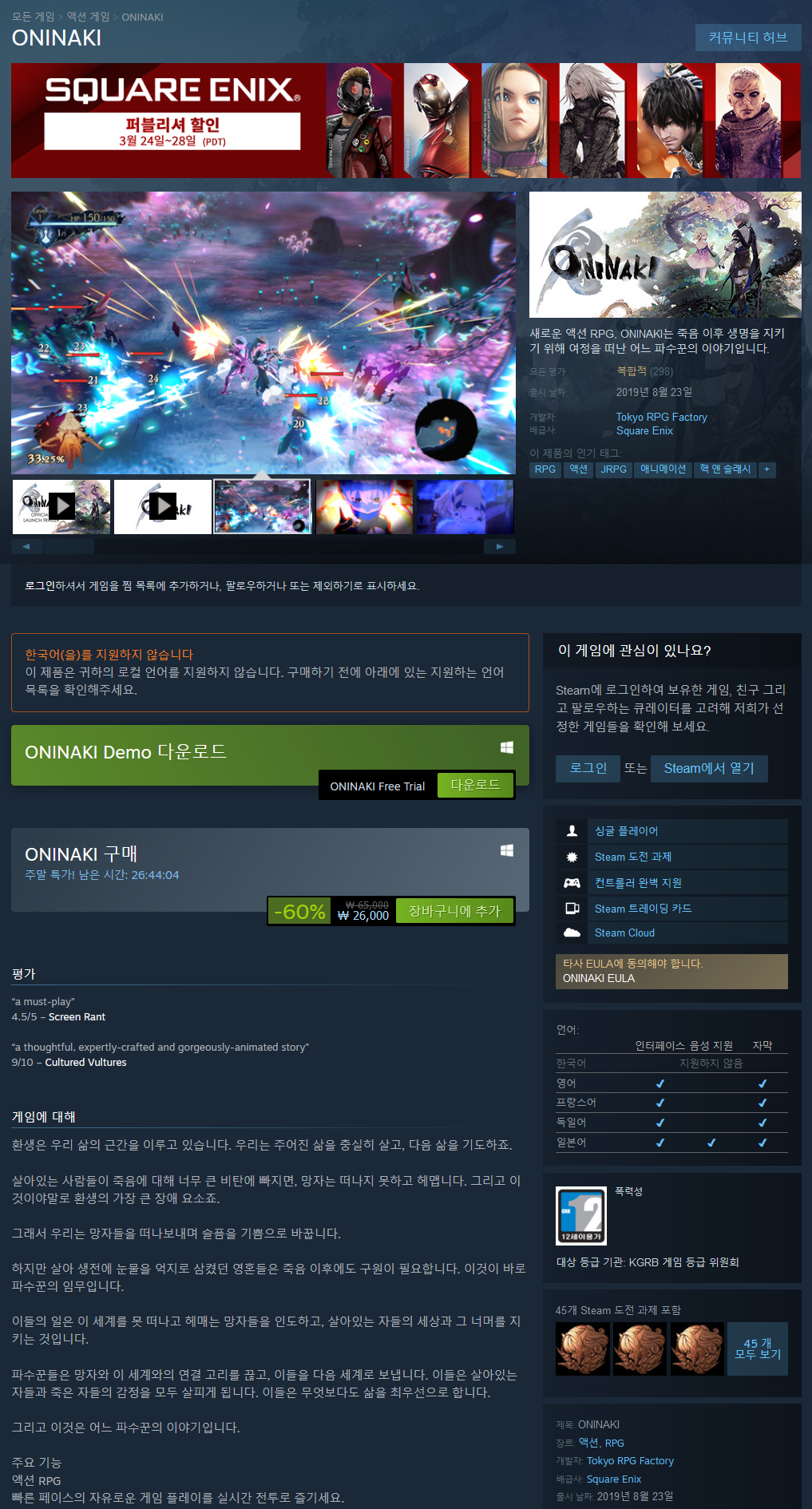 음, 복합적이면 삼국지 12,14 처럼 게임이라 부를 수 없는 처참한 게임성을 가지고 있거나 시스템 적으로 불안해서 매번 꺼지는 등의 문제가 발생하기 마련인데 그 정도는 아닌 거 같다. 다만 가격이 65,000원은 아니고 2만원 언저리가 적당한 느낌. 세일할 때 4만원 주고 샀는데도 그렇게 만족스럽진 않았다.