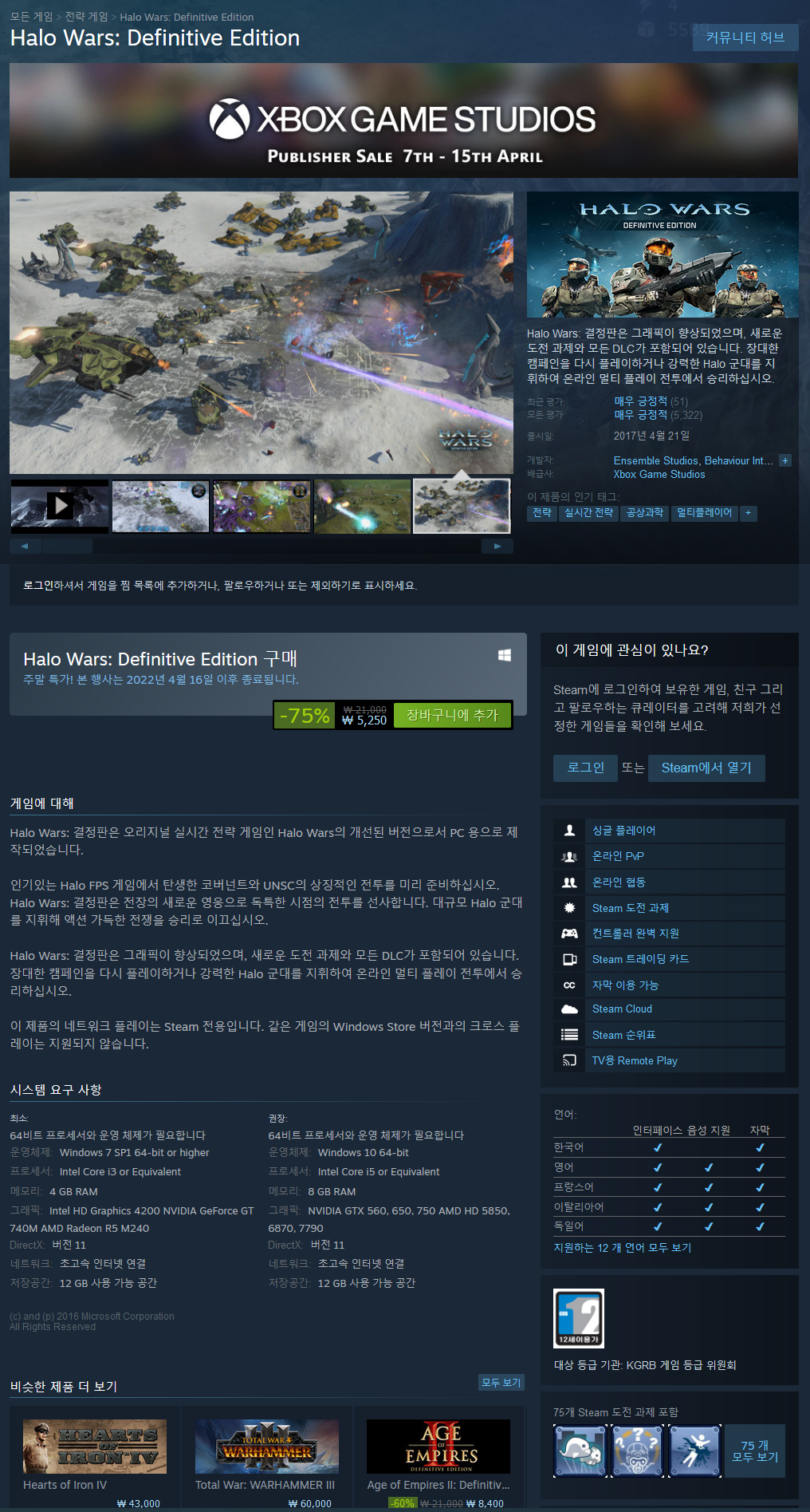 Halo Wars: 결정판은 그래픽이 향상되었으며, 새로운 도전 과제와 모든 DLC가 포함되어 있습니다. 장대한 캠페인을 다시 플레이하거나 강력한 Halo 군대를 지휘하여 온라인 멀티 플레이 전투에서 승리하십시오.