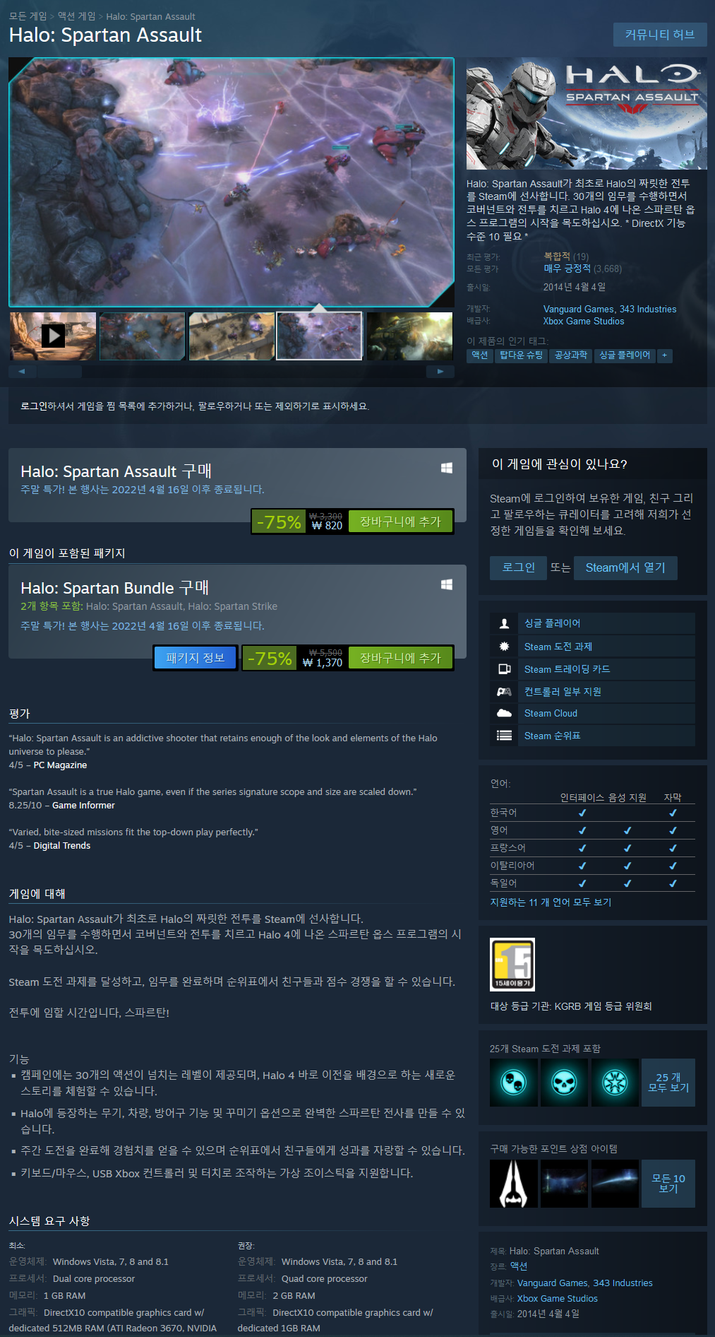 그나마 스팀으로 출시된 헤일로 게임이라는 것과 헤일로를 새로운 장르로 시도했다는 점에 의의를 두어야 할 것 같다.