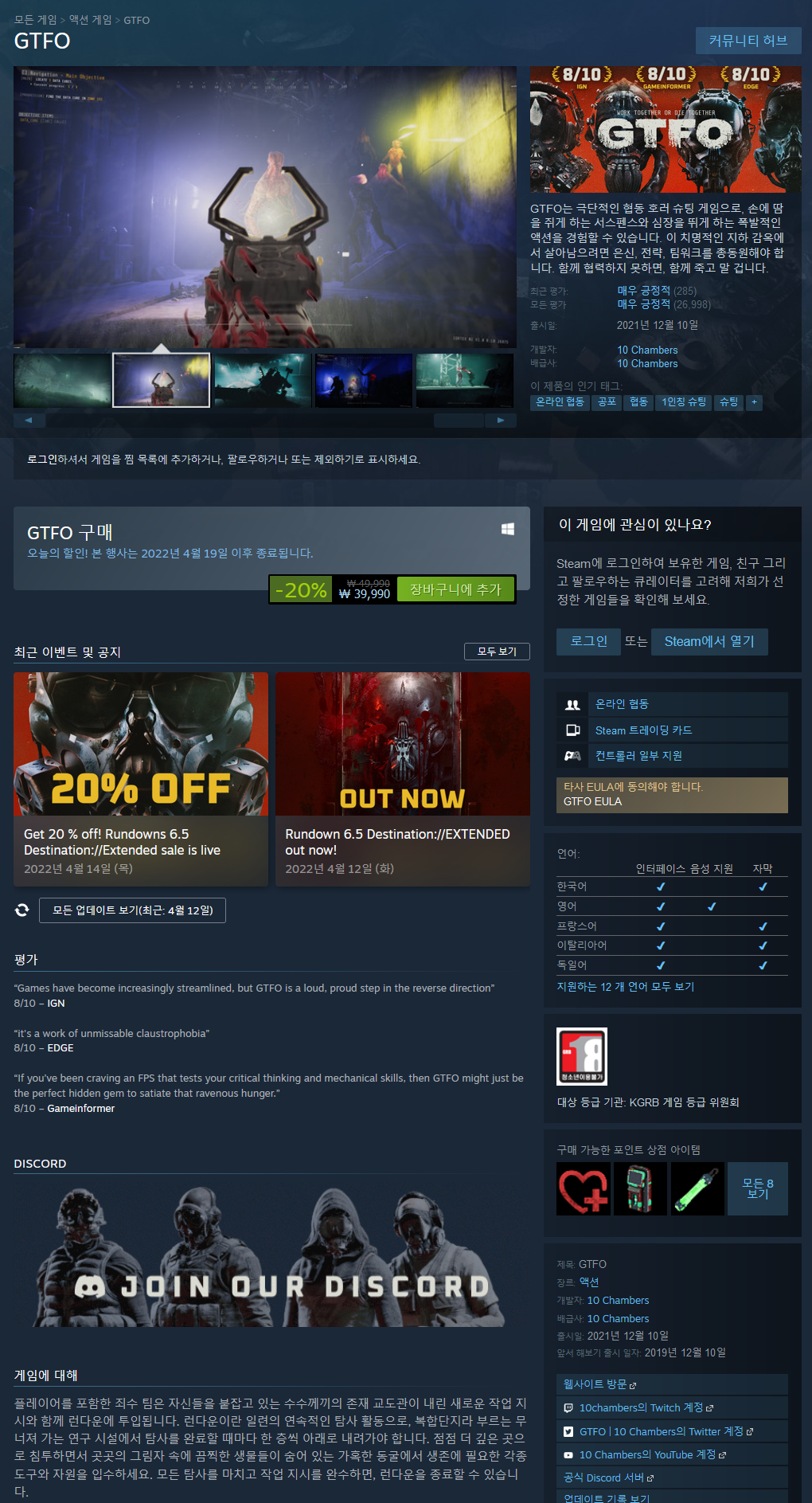 - https://bbs.ruliweb.com/game/85274 //루리웹 GTFO 게시판