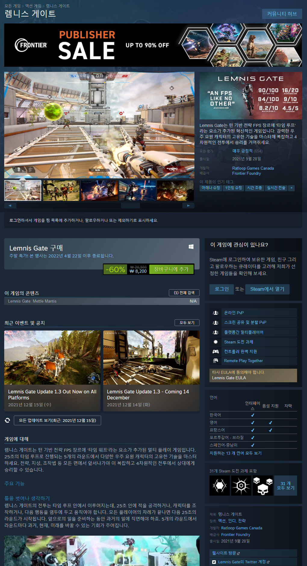 렘니스 게이트는 턴 기반 전략 FPS 장르에 '타임 워프'라는 요소가 추가된 멀티 플레이 게임입니다. 25초의 타임 루프로 진행되는 5개의 라운드에서 다양한 우주 요원 캐릭터의 고유한 기술을 마스터하세요. 전략, 지성, 조작법 등 모든 면에서 앞서나가야 이 복잡하고 4차원적인 전투에서 상대에게 승리할 수 있습니다.