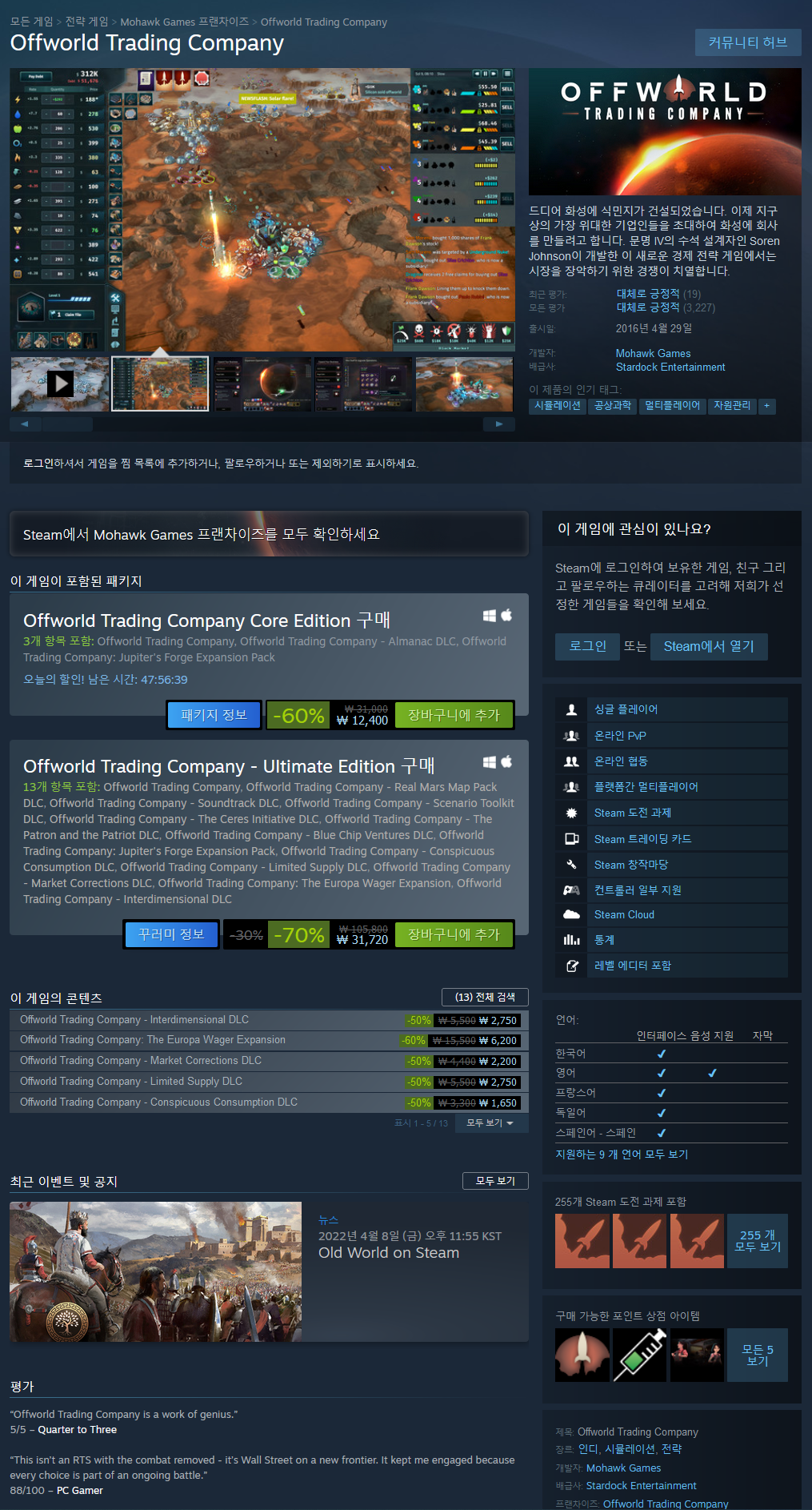 문명 IV의 수석 설계자가 새로운 종류의 전략 게임인 Offworld Trading Company 경제 전략 게임을 개발했습니다.