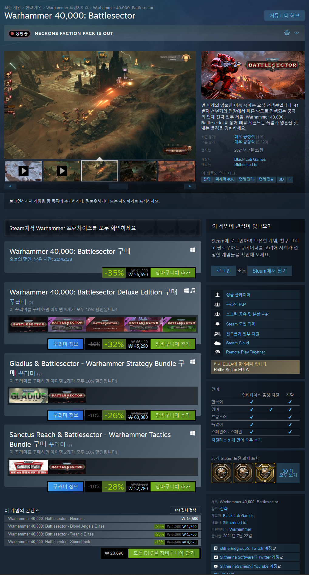 Warhammer 40,000: Battlesector는 41번째 천년기의 어둡고 잔인한 우주에서 빠른 속도로 펼쳐지는 턴제 전략 게임입니다. 자신의 세력을 고르고, 군대를 구축하고, 강력한 영웅들을 전장에 배치하고, 우월한 전략, 놀라운 능력, 치명적인 무기를 사용해서 승리를 쟁취하세요.