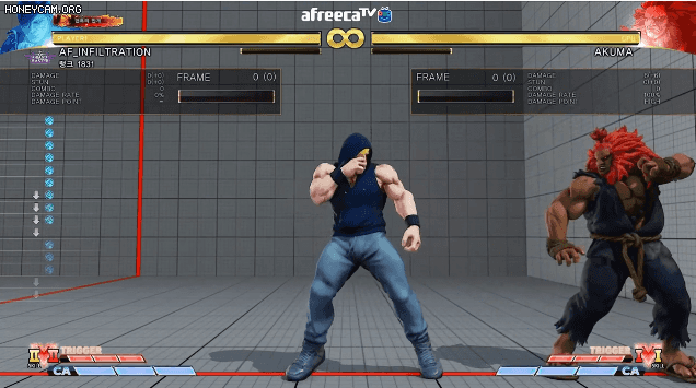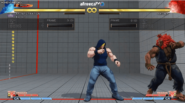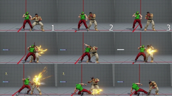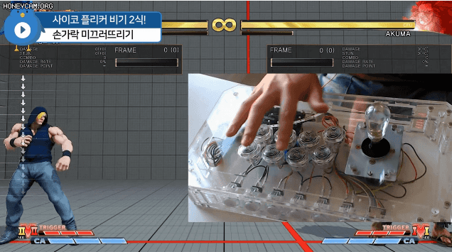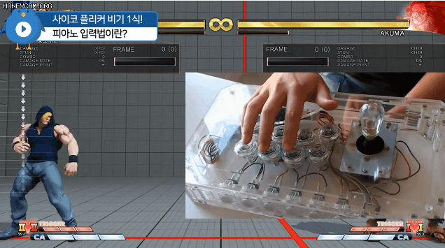 | 일단 걸어가는중 상대중 제자리형 반격형 리버설이 있는 캐릭이라면 캐논을 걸어가며 미는도중에 상대방이 리버설을 사용하면 리버설이 나오는것을 보고 앞점프를 하면(사진은 제가 습관이 되서 약킥을 누름) 리버설이 끝나고 나서 캐논에 맞게 됩니다. 2타까지 밀면서 상대방이 그전에 리버설을 쓰는지 아닌지를 잘 보시면 됩니다. |