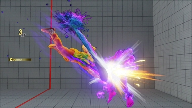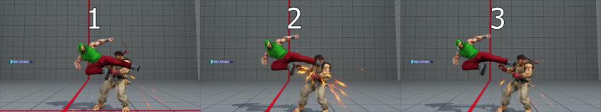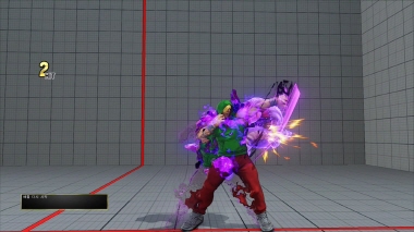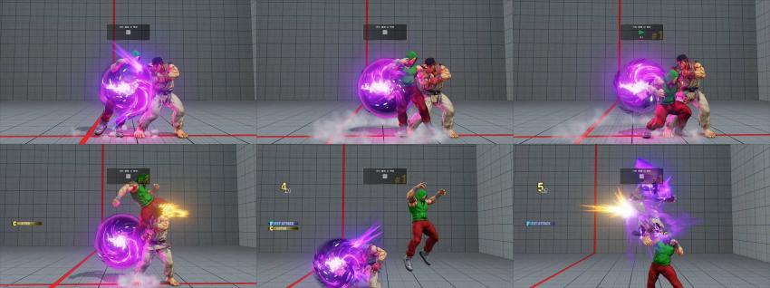 이 연습은 CPU의 상태를 가드와 가드후에 잡기를 설정해 놓으시고 [캐논 1타 가드->대쉬로 밀기->강킥 히트]