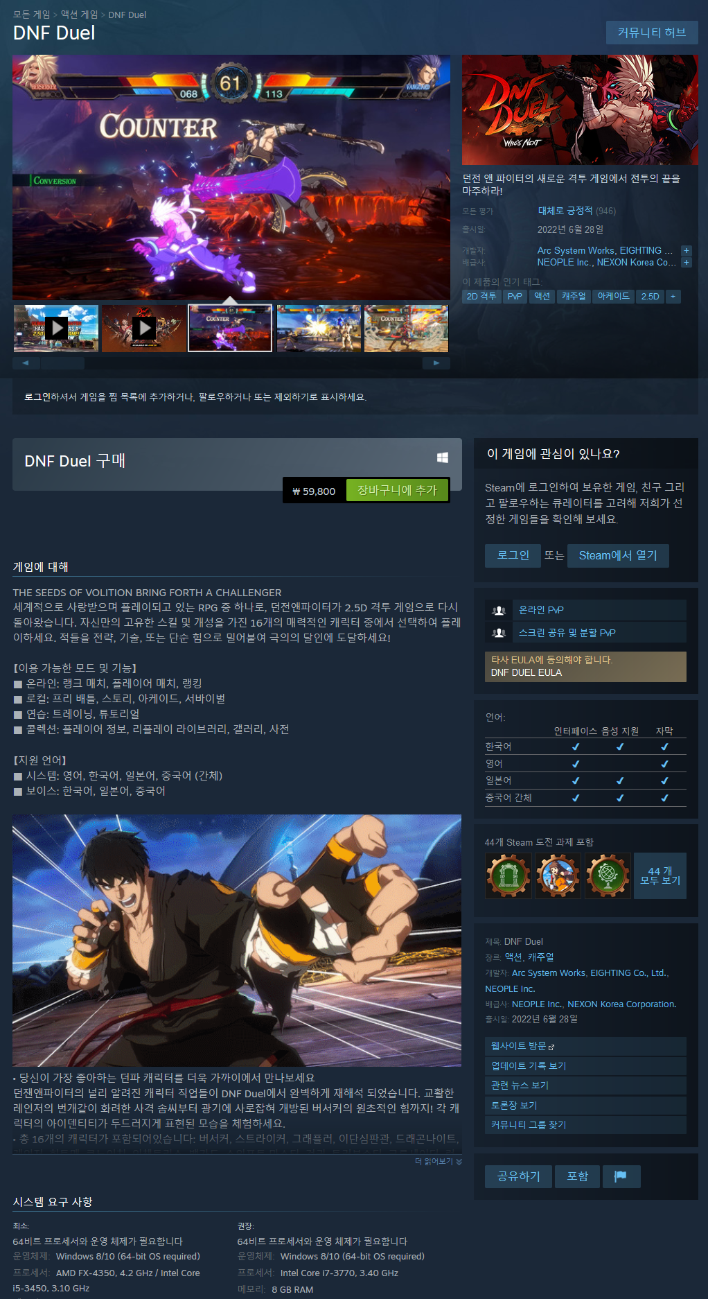 세계적으로 사랑받으며 플레이되고 있는 RPG 중 하나로, 던전앤파이터가 2.5D 격투 게임으로 다시 돌아왔습니다. 자신만의 고유한 스킬 및 개성을 가진 16개의 매력적인 캐릭터 중에서 선택하여 플레이하세요. 적들을 전략, 기술, 또는 단순 힘으로 밀어붙여 극의의 달인에 도달하세요!