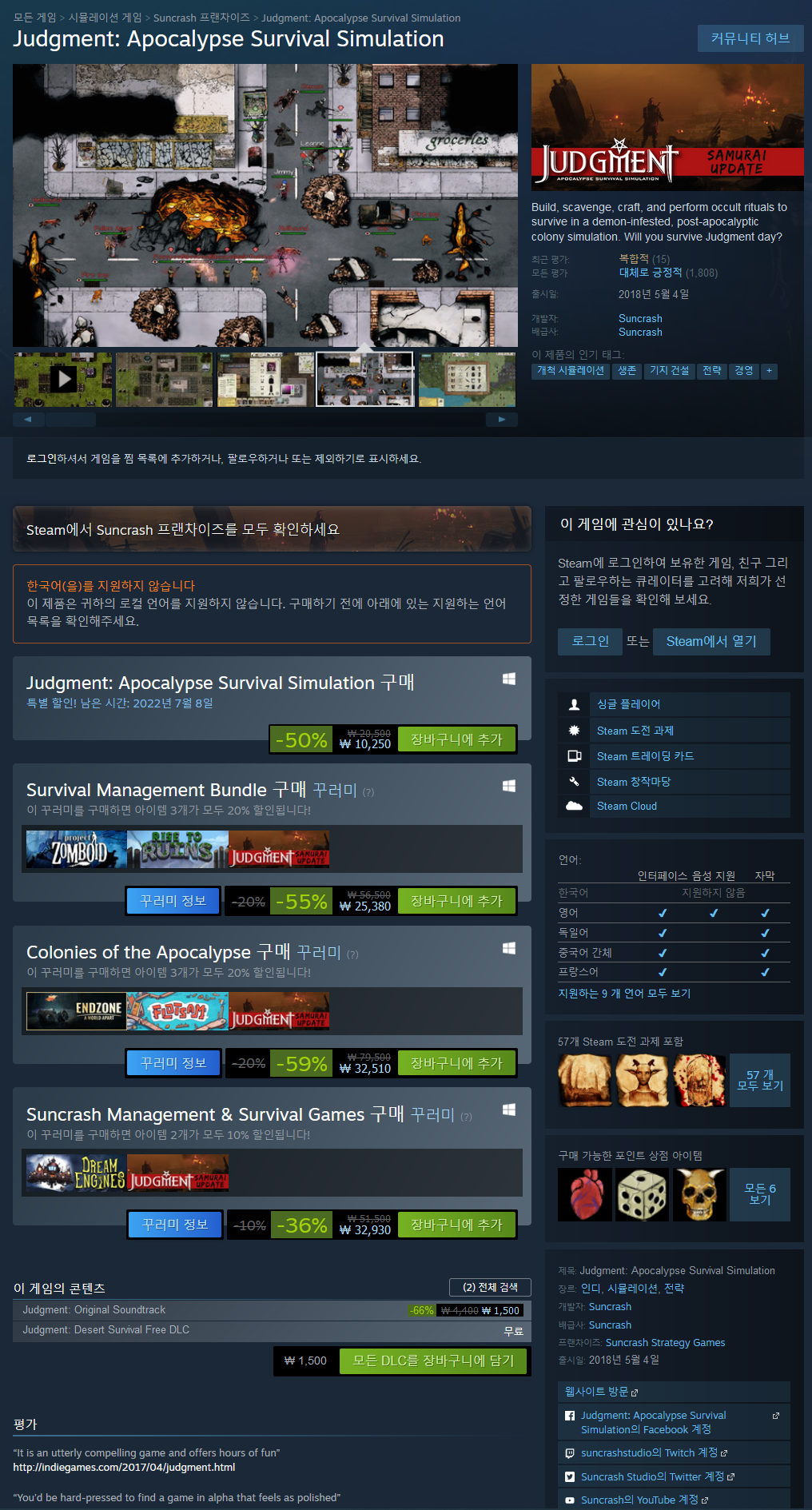 다행이 저지먼트 : 아포칼립스 서바이벌 시뮬레이션은 저에겐 상당히 매력적인 게임이었습니다.