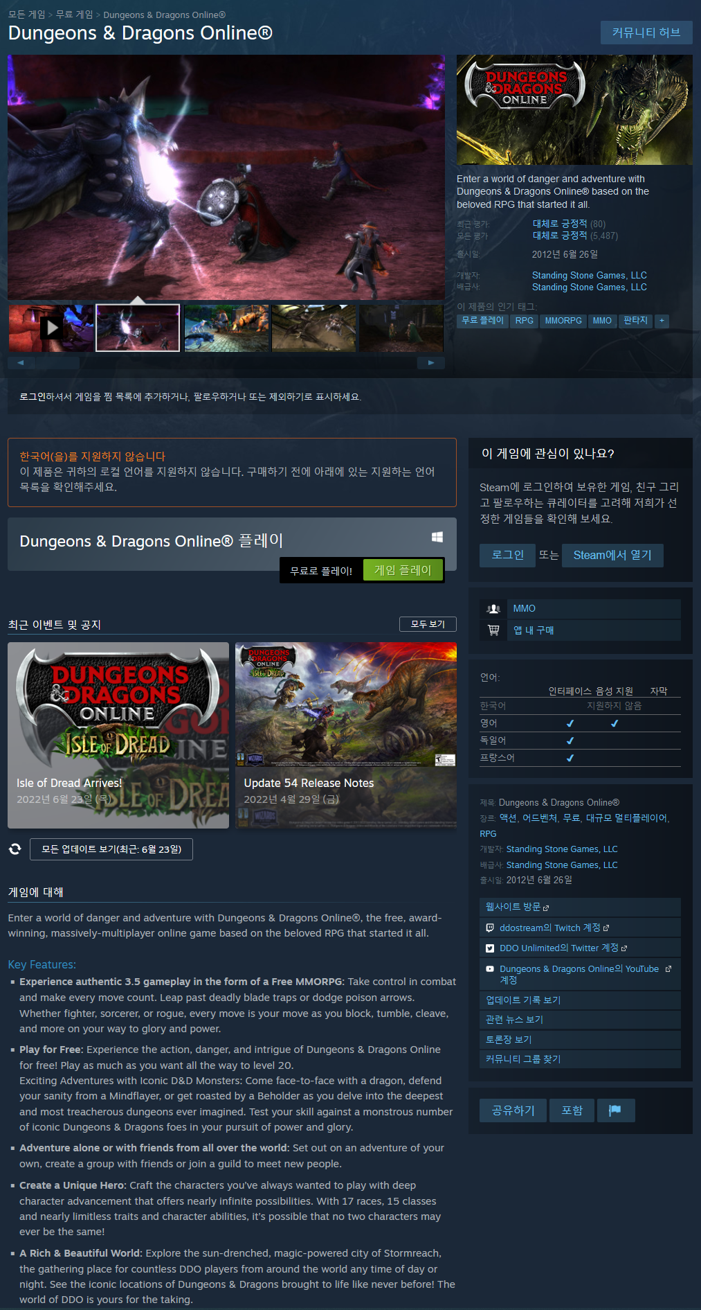 모든 것을 시작한 사랑받는 RPG를 기반으로 하는 무료, 수상 경력, 대규모 멀티플레이어 온라인 게임인 Dungeons & Dragons Online®으로 위험과 모험의 세계로 들어가십시오.