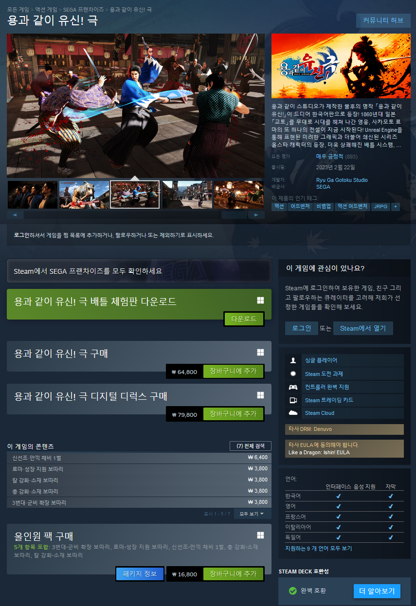 용과 같이 스튜디오가 제작한 불후의 명작 「용과 같이 유신!」이 드디어 한국어판으로 등장!