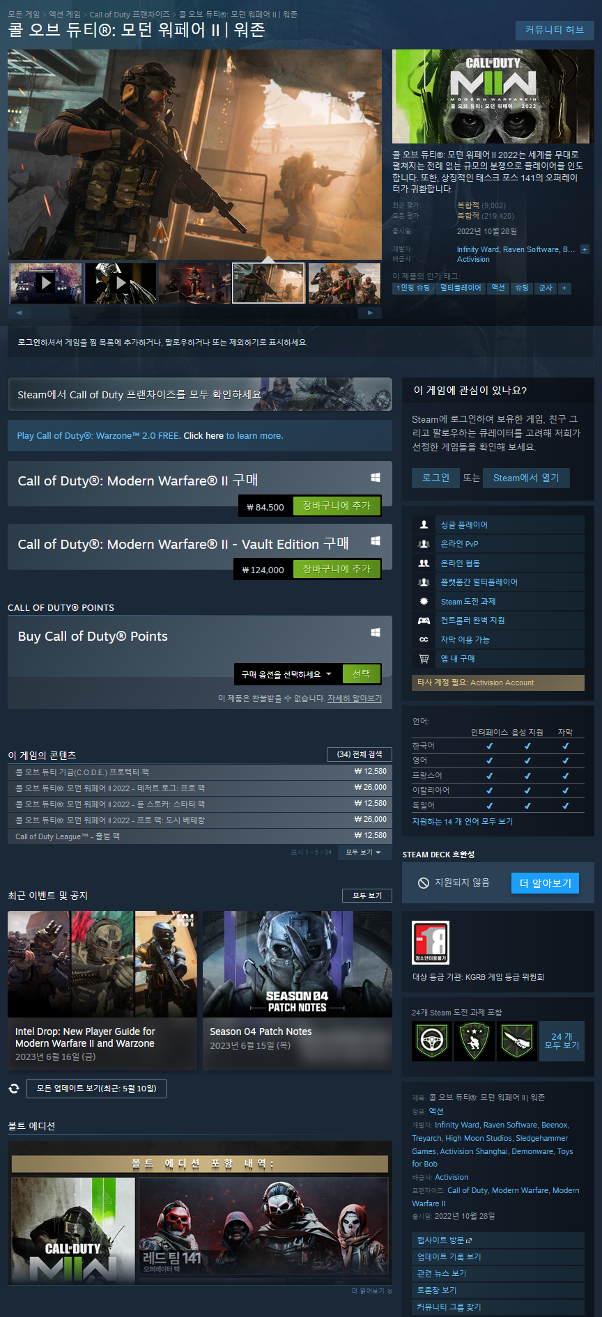 - https://store.steampowered.com/developer/callofduty //프렌차이즈 링크