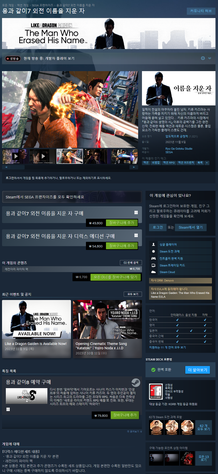 본 타이틀의 추가 데이터로 『용과 같이8 스페셜 체험판』 배포 결정.