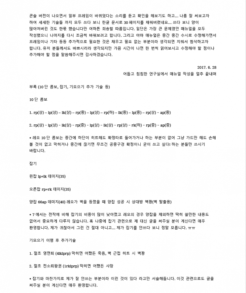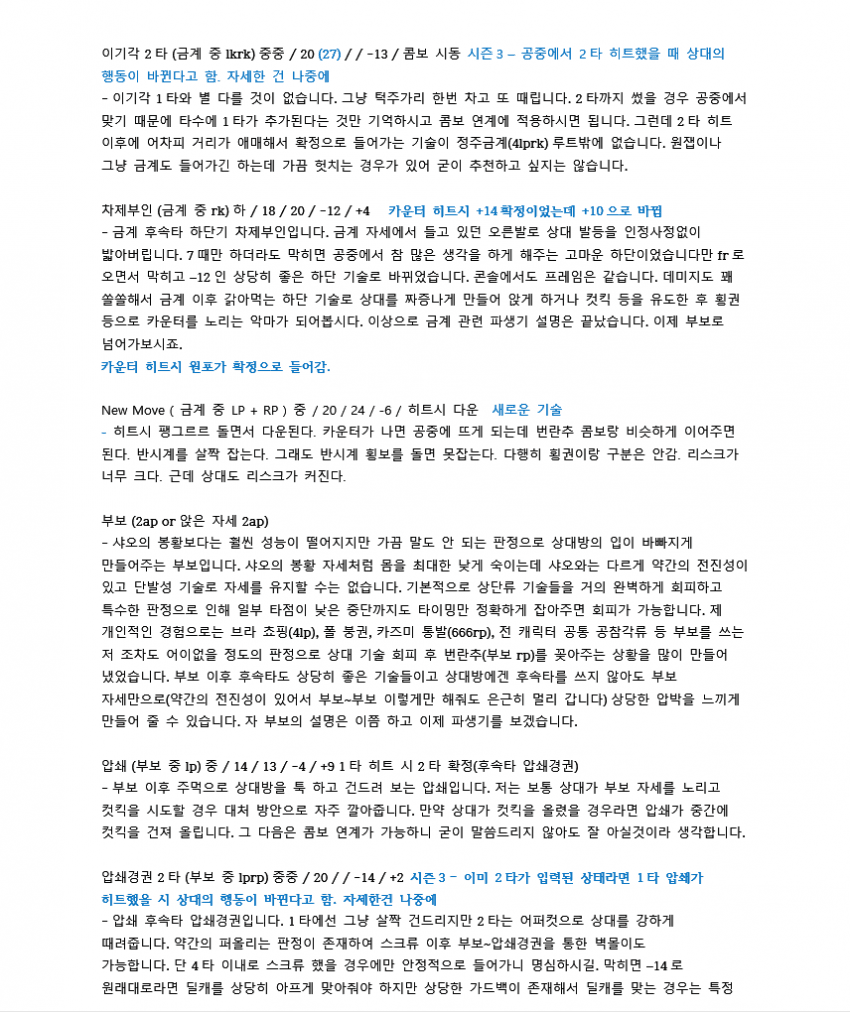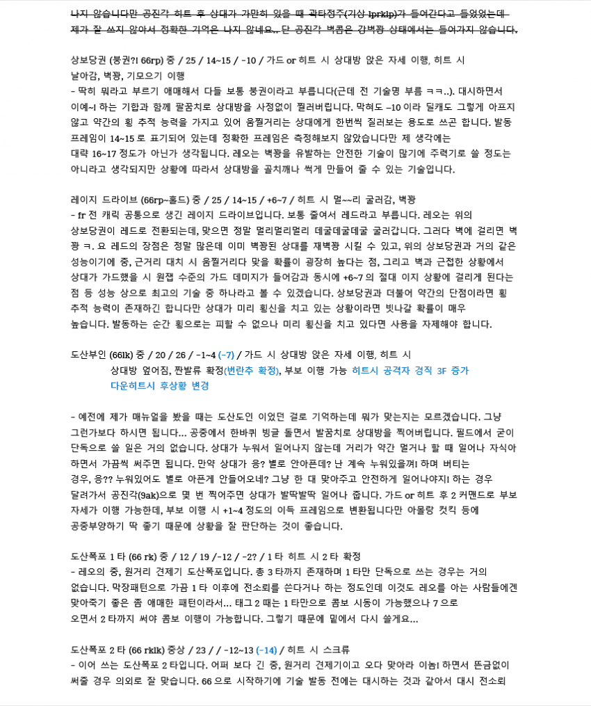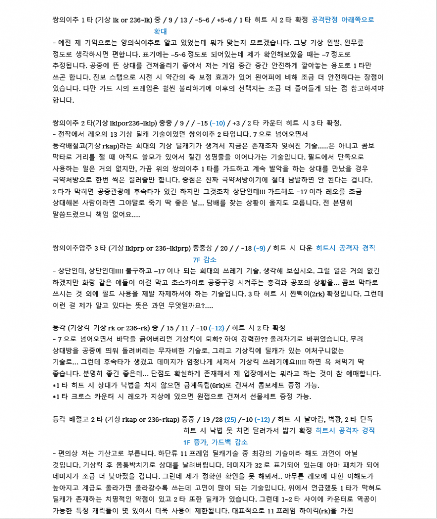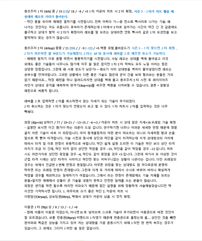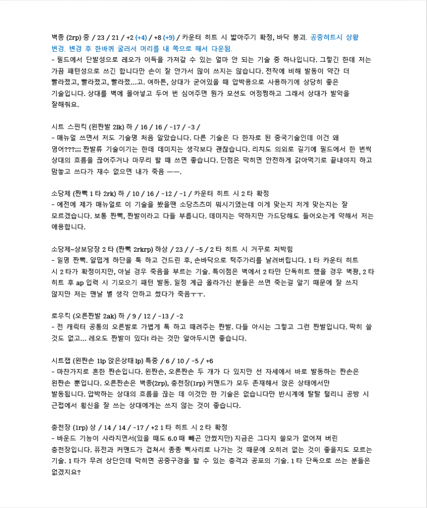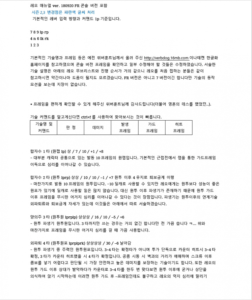7이전에 벽콤으로 많이 쓰였던 루트입니다. 레오는 2rp 커맨드가 따로 있기 때문에 2를 먼저 입력한 후 rp를 눌러야 짠손이 나가요.