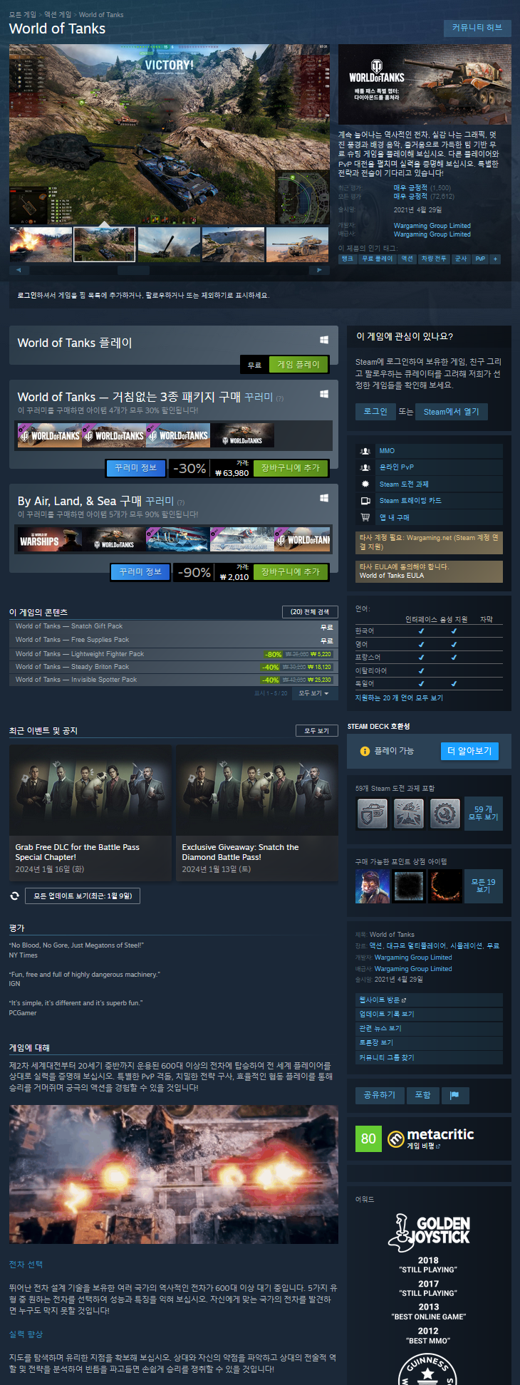매일 수백만 명의 플레이어가 월드 오브 탱크에서 멋진 경험을 하고 있습니다. 끊임없이 성장하는 커뮤니티에 합류하여 새로운 친구를 만들어 보십시오!