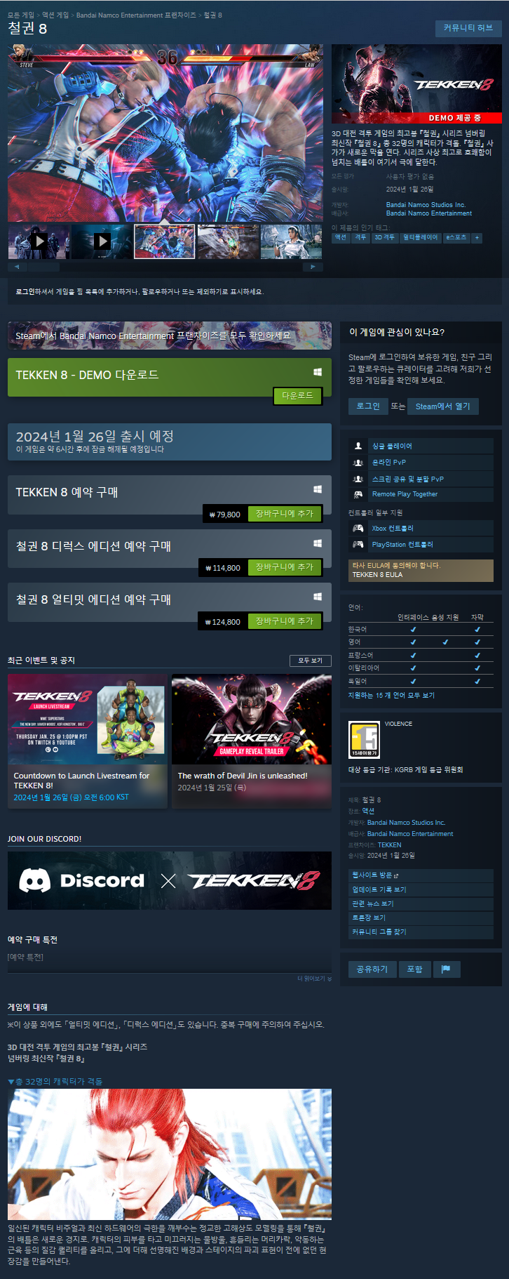 - TEKKEN 8 0% (79,800원 최저가)