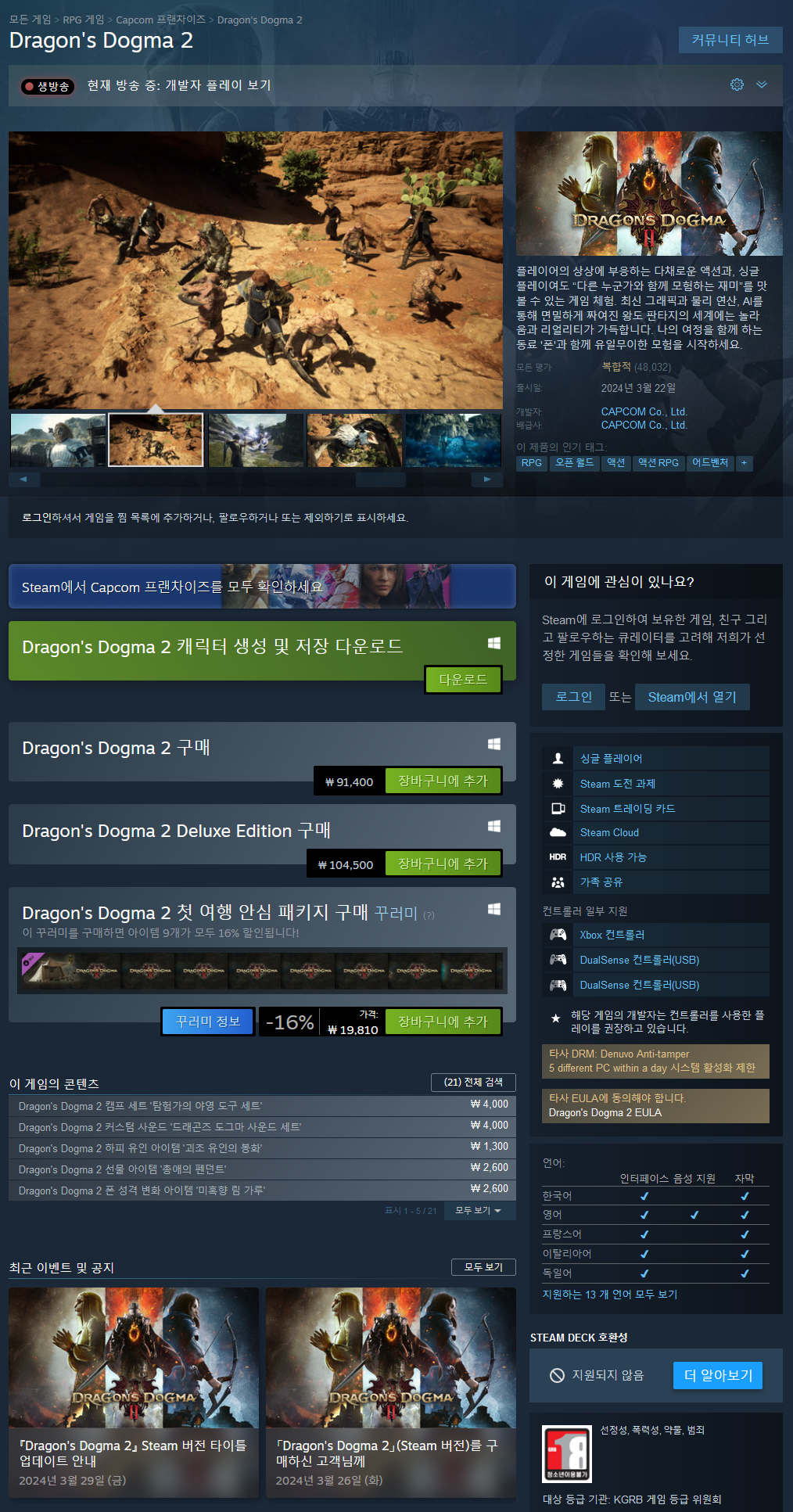 독자적인 플레이 체험을 제공하는 오픈 월드 액션 「Dragon's Dogma 2」에서는