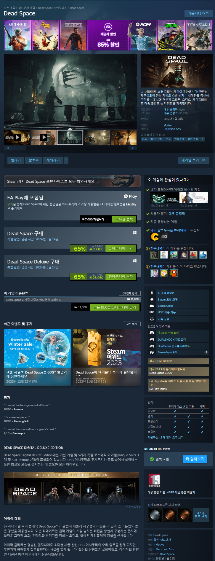 | 데드 스페이스 3, Dead Space 3 소개(Introduce),리뷰(Review),할인(Sale) 관련 (0) | 2024.05.04 |