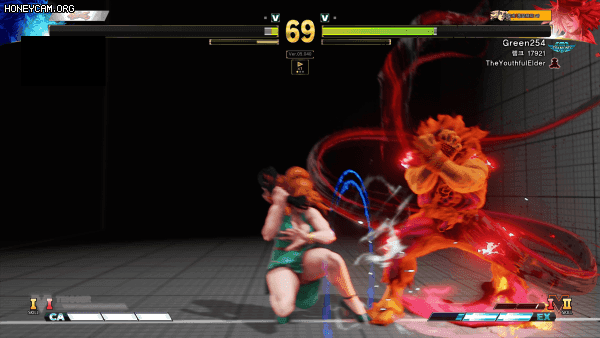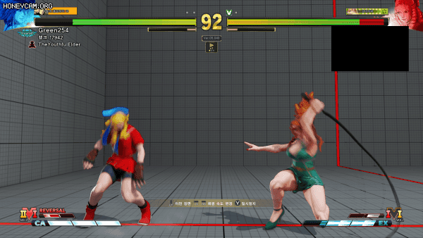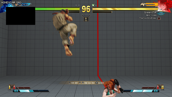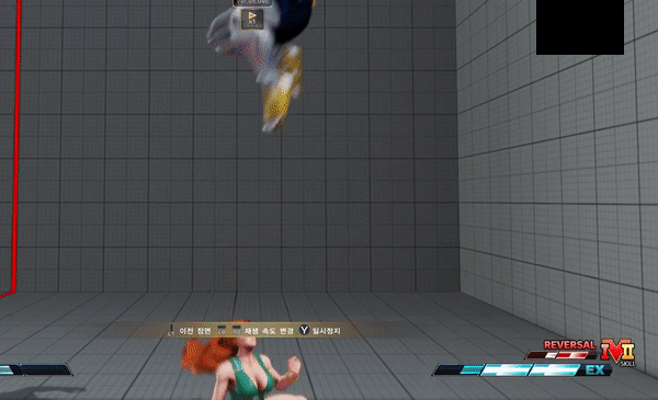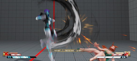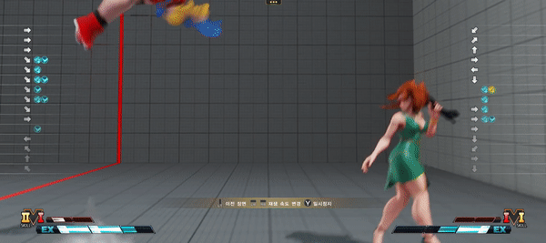 정 개기는 상대를 때리고 싶다면 커잡 후 제자리에서 ex(약강) 하트레이드(214손)를 쓰는 것도 한 방법이다