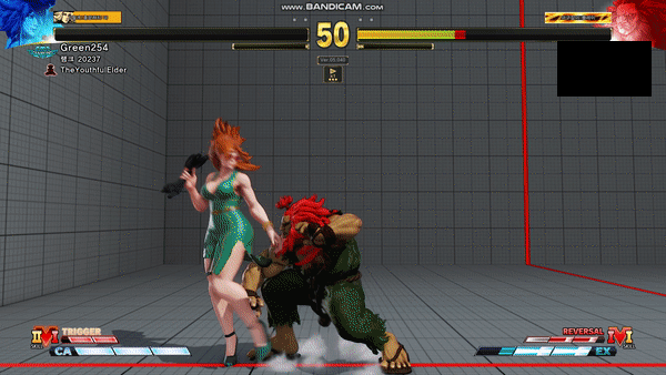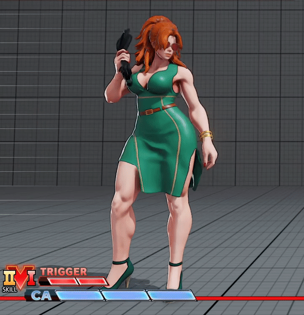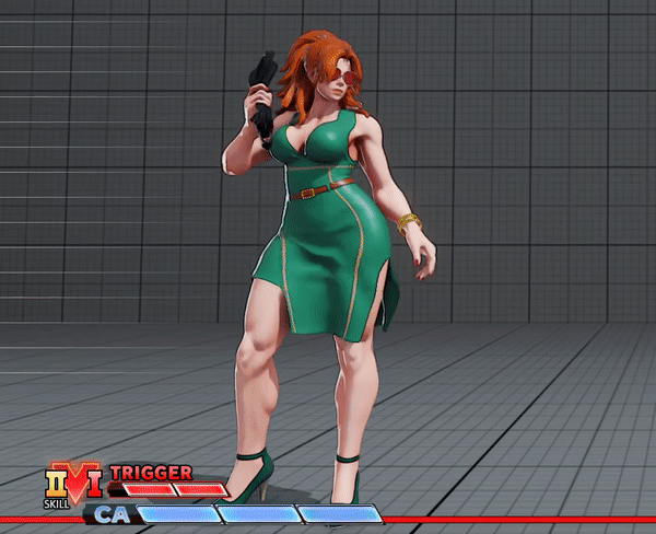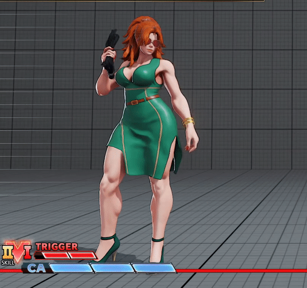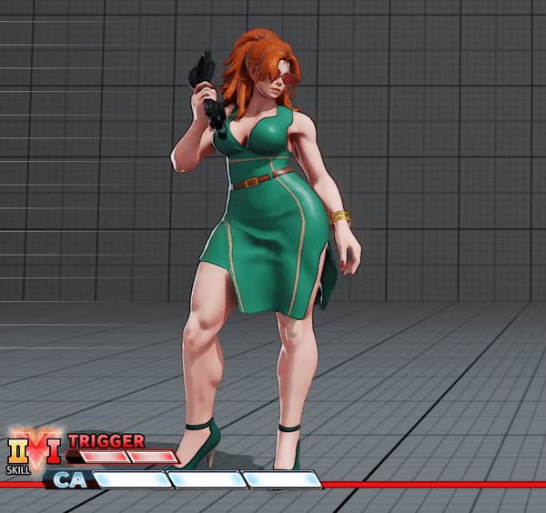 강제 연결이라 히트 확인이 쉽게 가능하다는 게 장점. 그 외에는 보통 가드/히트 후 트리거 캔슬 용으로 쓰임(가드 +6 히트 +12).