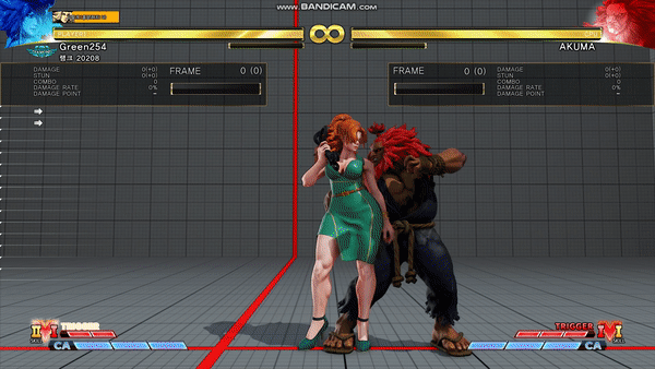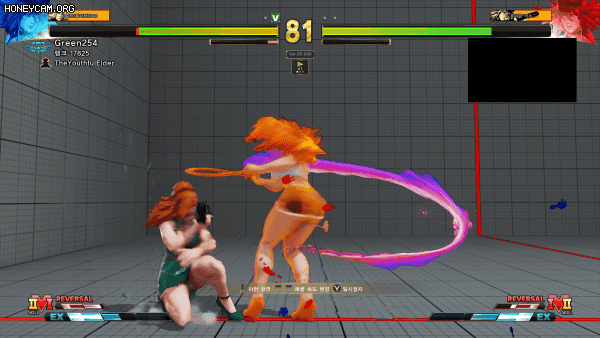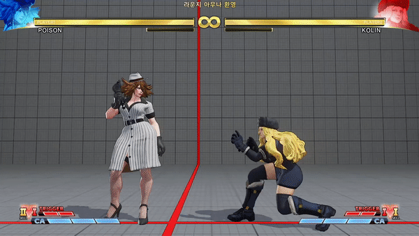 카운터가 나면 +5인데, 포이즌의 최속 중기본기는 6프레임이라서 대부분 캐릭이랑 다르게 3프레임 카운터 중기본기가 안되는 건 약점임.