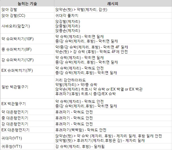 콤보용으로 쓰는 기본기 쓰는용도