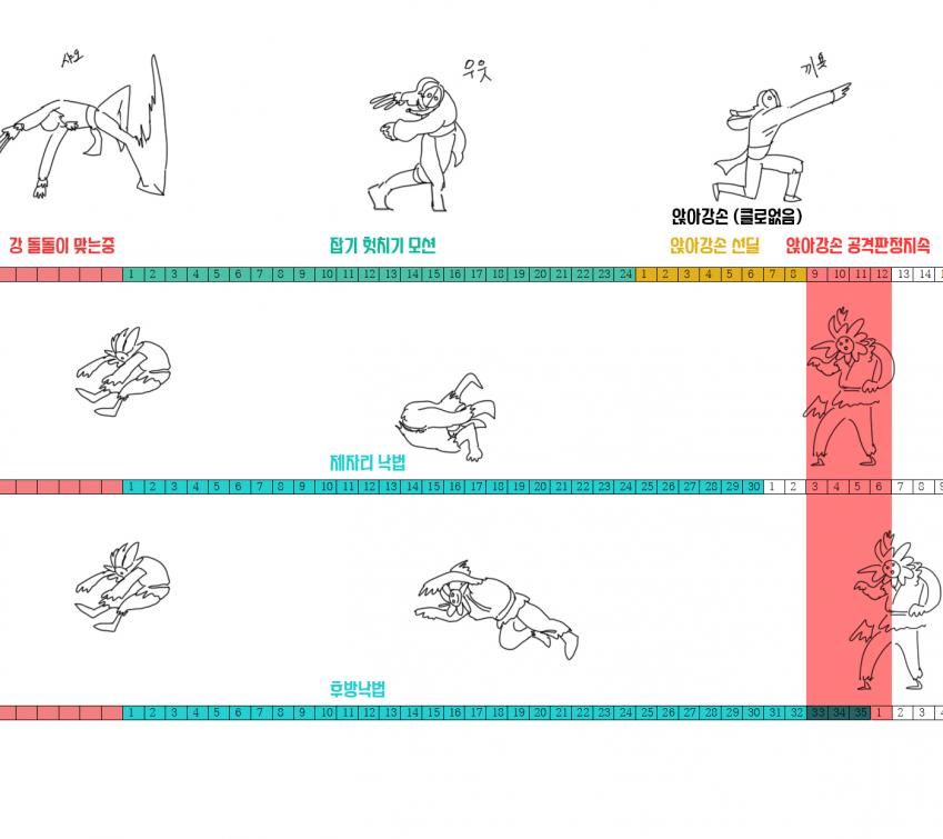 후방낙법으로 35프레임동안 무적으로 있어도 기상후 1프레임에 앉강손이 깔리는것이다.