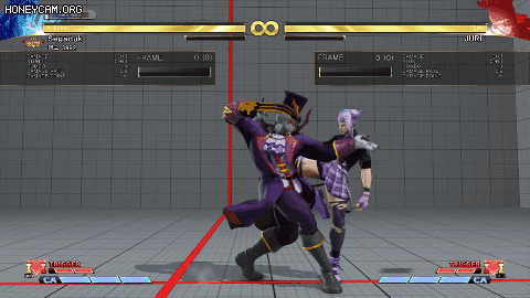 맨손 역시 앉으면 빗나감. 3프레임 기본기라는 장점이 있지만 3프레임 비비기로는 앉아도 맞는 약발이라는 훌륭한 기본기가 있기 때문에 이 기술도 주로 연속기용으로만 사용함.