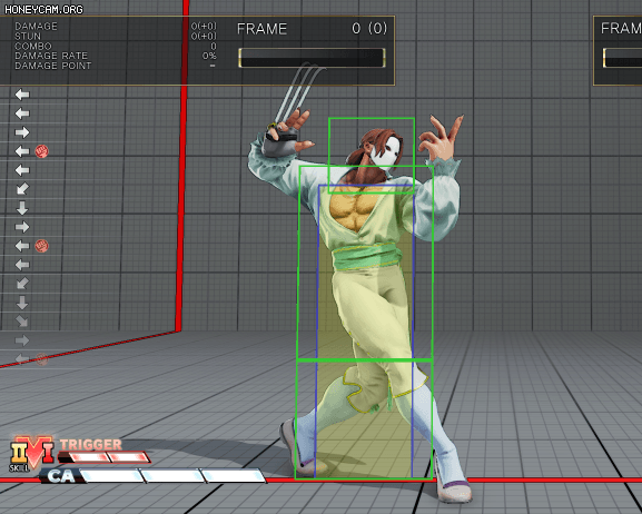 서강손(클로) : 발동8, 지속2, 경직14, 히트+6, 가드-2, 캔슬가능(S, CA, V)