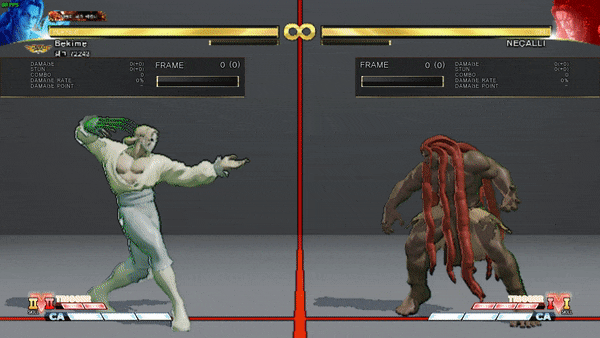 앉약손(맨손) : 발동4, 지속3, 경직6, 히트+4, 가드+2, 캔슬가능(S, CA, V)