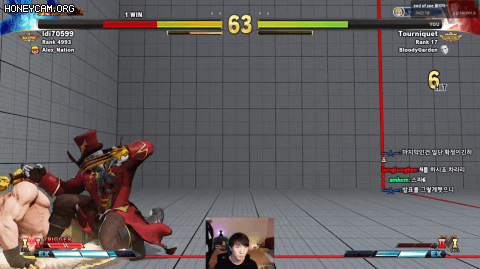 결국 고우키가 제자리낙법후 3프레임 기본기를 비벼도 같이나오는 꼬챙이 앉강손에 지고 콤보한사발 먹는다.
