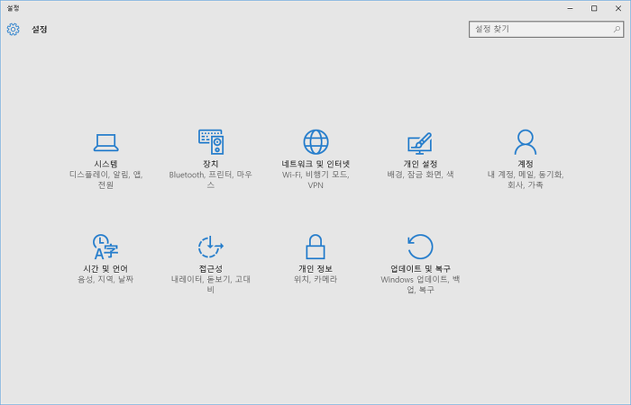설정 -> 업데이트 및 복구 클릭 (우측 하단)