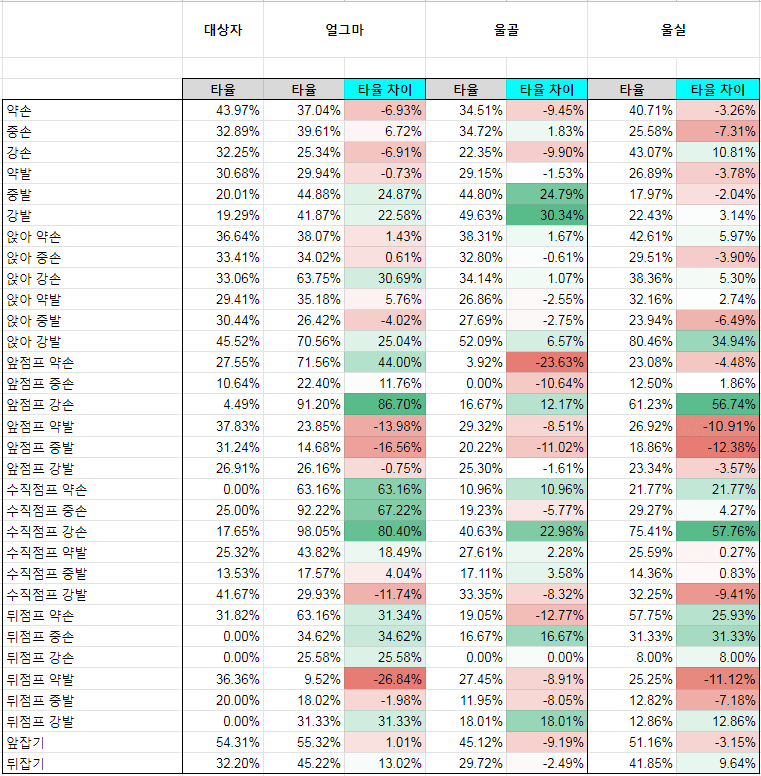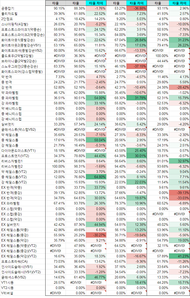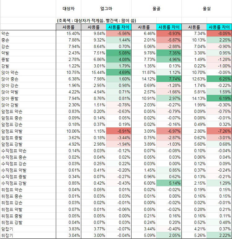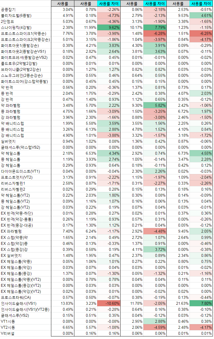 서서 약K는 히트시 0F에서 1F 유리하게 변경되었다.